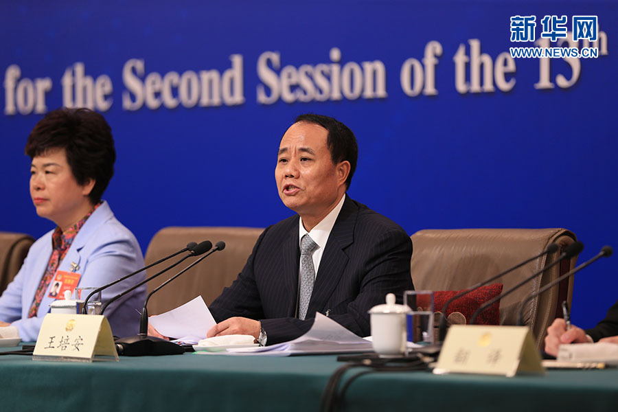 全國政協十三屆二次會議3月5日15:00在梅地亞中心多功能廳舉行記者會,邀請5位全國政協委員就“打贏防范化解重大風險、精準脫貧、污染防治三大攻堅戰”回答記者提問。圖為全國政協人口資源環境委員會副主任(福利保障界),中國計劃生育協會黨組書記、常務副會長,原國家衛生計生委副主任王培安回答記者提問。新華網/中國政府網 劉廈 攝
