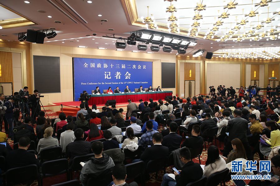 全國政協十三屆二次會議3月6日下午在梅地亞兩會新聞中心舉行記者會,邀請5位全國政協委員就“優化營商環境、促進民營經濟高質量發展”回答記者提問。圖為記者會現場。新華網/中國政府網 劉廈 攝