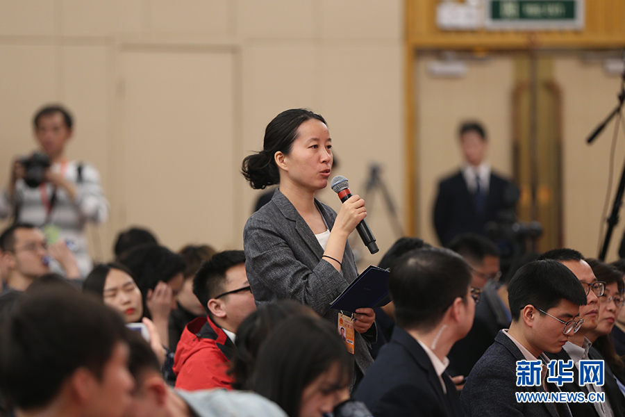 十三屆全國人大二次會議新聞中心于3月10日(星期日)上午10時30分在梅地亞中心新聞發布廳舉行記者會,邀請中國人民銀行行長易綱,副行長陳雨露,副行長、國家外匯管理局局長潘功勝,副行長范一飛就“金融改革與發展”相關問題回答記者提問。圖為財經雜志記者提問。新華網/中國政府網 劉廈 攝