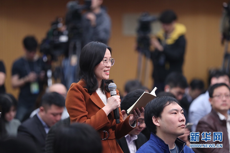 十三屆全國人大二次會議新聞中心3月11日(星期一)8時45分在梅地亞中心新聞發布廳舉行記者會,邀請科技部部長王志剛、副部長李萌、戰略規劃司司長許倞、政策法規與創新體系建設司司長賀德方、資源配置與管理司司長張曉原就“加快建設創新型國家”相關問題回答中外記者提問。圖為上海人民廣播電臺記者提問。新華網/中國政府網 劉廈 攝