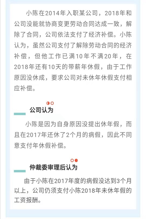 未休年假能要求經(jīng)濟補償嗎?人社部官方微信2日發(fā)布案例,小陳2018年和公司解除了合同,公司依法支付了經(jīng)濟補償。小陳認為,他工作已滿10年不滿20年,在2018年還有10天的帶薪年休假,由于工作原因沒休成,要求公司對未休年休假支付相應補償。此訴求最終獲得仲裁委支持。(李金磊)