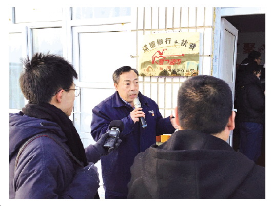 圖為駐落花營村工作隊第一書記李向明向記者介紹創辦“道德銀行+扶貧愛心超市”給村民帶來的變化。