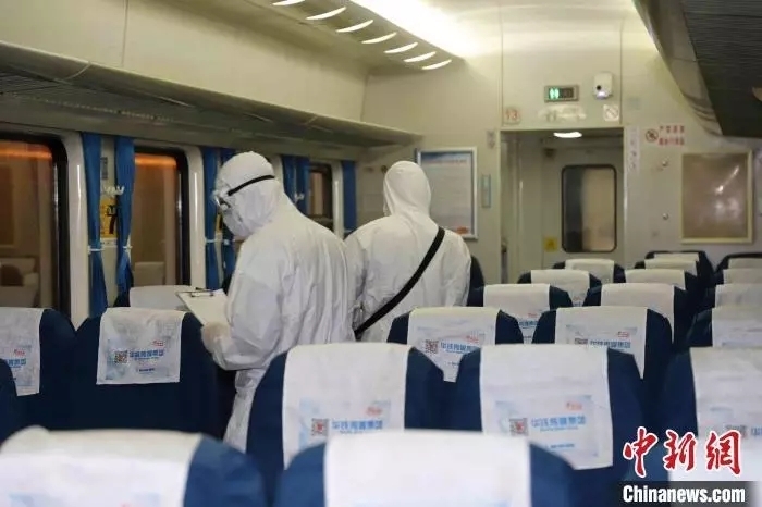 在車上,廣州鐵路疾控中心工作人員正全副武裝對列車進行全面消毒。帶隊作業的廣州鐵路疾控中心主任楊裕楨介紹:“根據目前疫情的情況,我們的工作整體上包括消毒、檢疫、防護和保障有四大塊。”據介紹,鐵路部門按照屬地政府的工作安排,采取預防性消毒、隨車消毒和終末消毒等方式,每日對候車室、旅客列車進行消毒。加強車站和旅客列車空調通風設施檢查、維修和消毒,做好候車室和旅客列車通風換氣,保持室(車)內空氣清新。