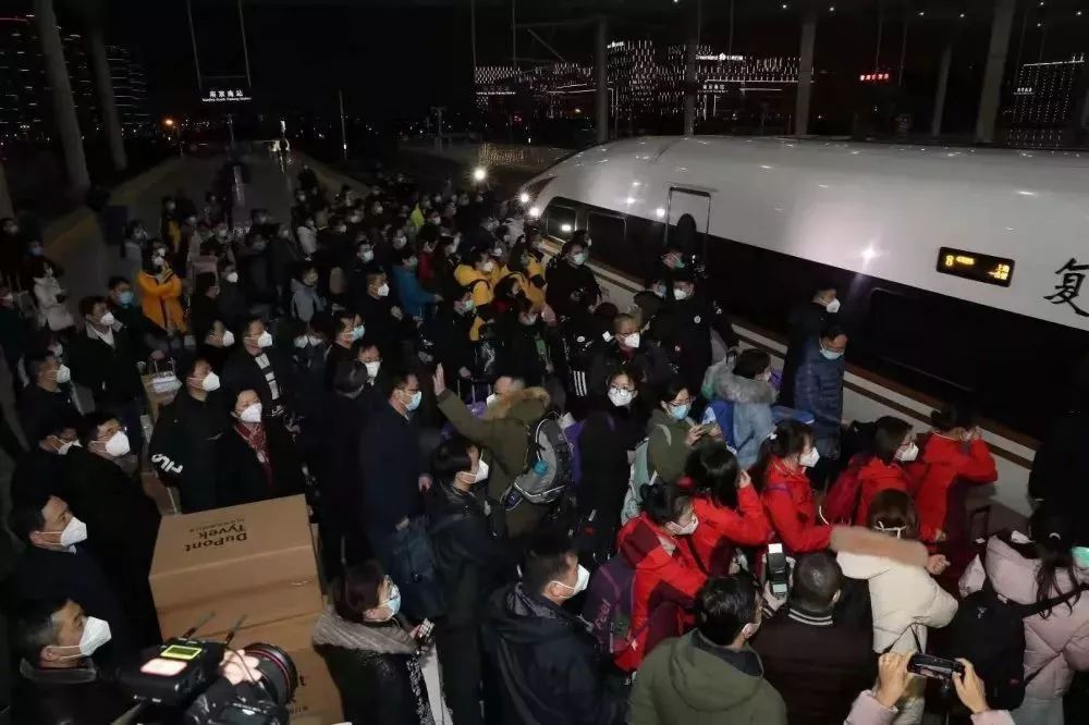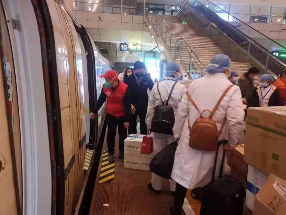 醫(yī)療隊(duì)員們搭乘高鐵緊急出發(fā)