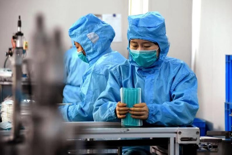 1月28日,工人在河北定州市一家口罩生產(chǎn)企業(yè)車間工作。連日來,河北省定州市口罩生產(chǎn)企業(yè)召回員工加班加點(diǎn)生產(chǎn)口罩,助力防控新型冠狀病毒感染的肺炎疫情。