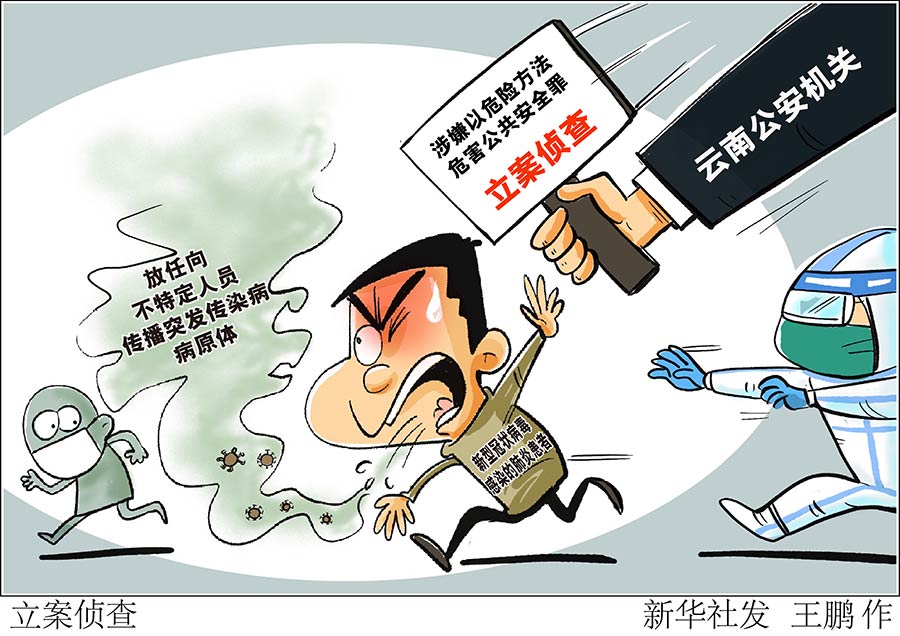 新華社昆明2月4日電(記者姚兵)云南省景洪市應(yīng)對新型冠狀病毒感染肺炎疫情工作領(lǐng)導(dǎo)小組指揮部4日通報,景洪市景哈鄉(xiāng)居民酈某某,2019年12月至今年1月有武漢旅居史,返回景洪后出現(xiàn)咳嗽等癥狀,被衛(wèi)生防疫機構(gòu)采取隔離觀察治療,1月24日被確診新型冠狀病毒感染的肺炎。在隔離觀察治療期間,酈某某違反《中華人民共和國傳染病防治法》,拒不執(zhí)行衛(wèi)生防疫機構(gòu)的預(yù)防、控制措施,放任向不特定人員傳播突發(fā)傳染病病原體,危害公共安全。酈某某的行為觸犯了《中華人民共和國刑法》第一百一十四條之規(guī)定,涉嫌以危險方法危害公共安全罪。