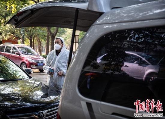 田正波也是志愿者車隊的一員,他每天往返醫院三五趟,負責武漢市漢陽區洲頭街怡暢園社區內有需要人群的出行。