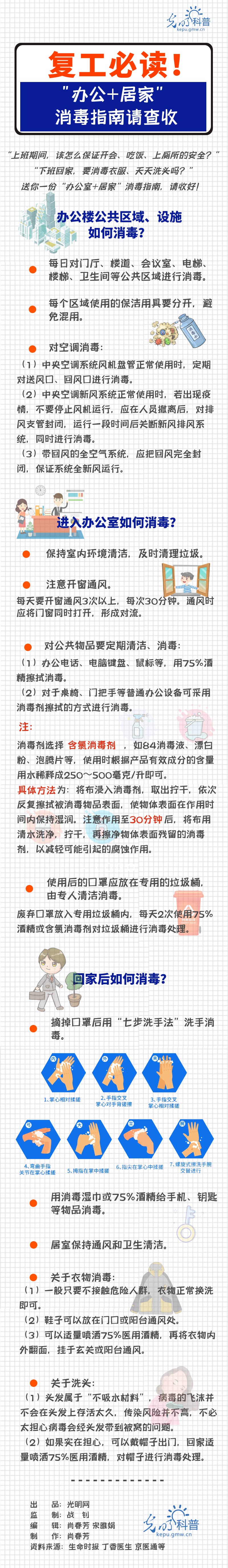 【防疫科普】復工必讀!“辦公+居家”消毒指南請查收