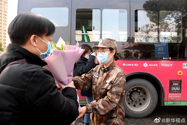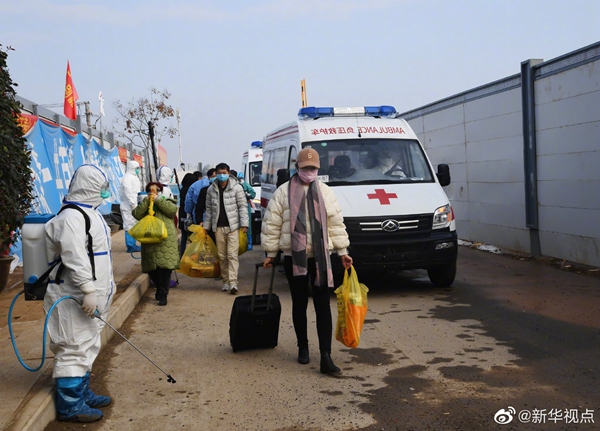 經過火神山醫院醫護人員的精心診治,首批7名符合出院標準的新冠肺炎確診患者13日下午出院。火神山醫院籌備工作指揮部統一安排車輛將患者分別送回所居住小區門口。