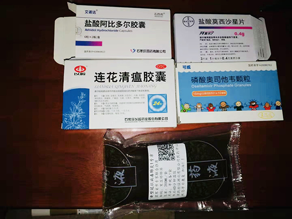 許峰在方艙醫院接受治療時服用的藥物。受訪者供圖