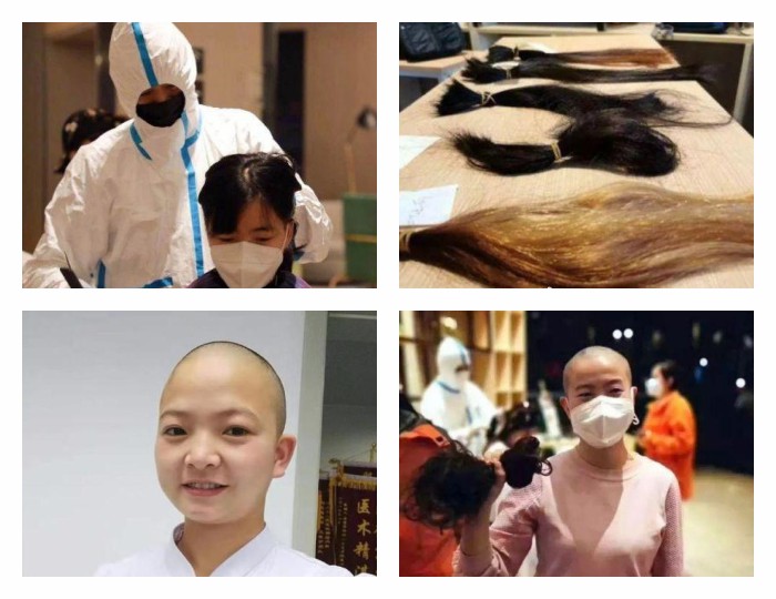 西安國際中心醫院醫療隊的女醫護正在剪發
