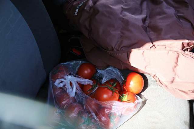 2月16日,湖北省武漢市,許可副駕旁的番茄。中青報·中青網(wǎng)記者 趙迪攝