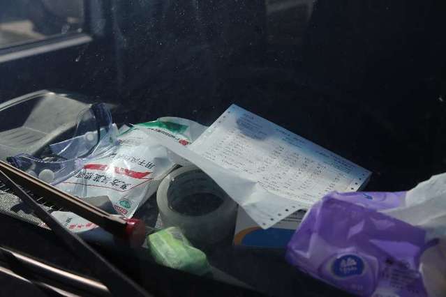2月16日,湖北省武漢市,許可送菜車車窗旁的物品。中青報·中青網(wǎng)記者 趙迪攝
