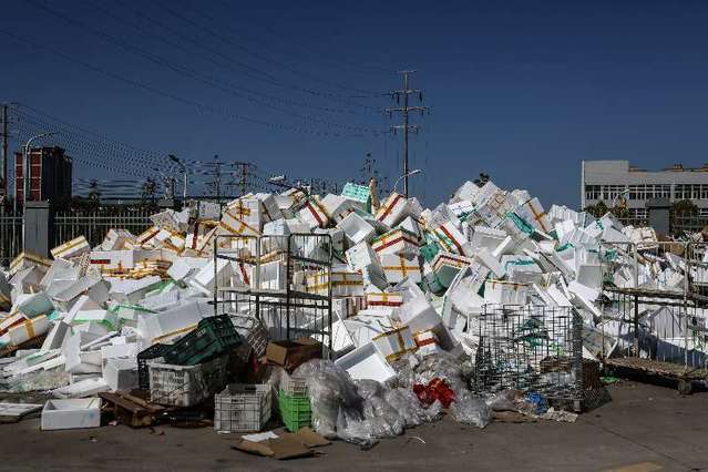 2月16日,湖北省武漢市,美菜武漢六倉外的泡面盒。中青報·中青網(wǎng)記者 趙迪攝