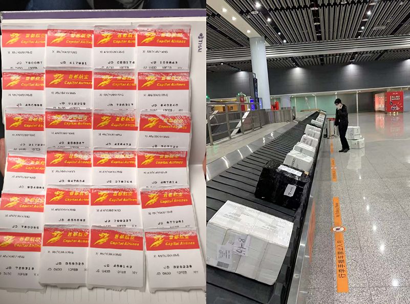 2月5日,首架貨機(jī)從西班牙馬德里(CA1026次航班)出發(fā),于當(dāng)天早上7:40分抵達(dá)了河南新鄭國(guó)際機(jī)場(chǎng)。在這架飛機(jī)上,載滿(mǎn)了口罩、護(hù)目鏡、防護(hù)服、消毒液等疫情急需物資,總計(jì)18個(gè)托盤(pán),約5噸,371336件,總價(jià)值人民幣377450元。