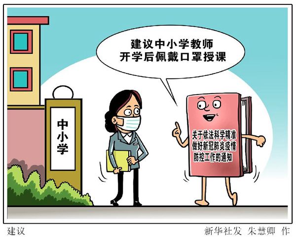 國務院聯防聯控機制:建議中小學教師開學后佩戴口罩授課-新華網