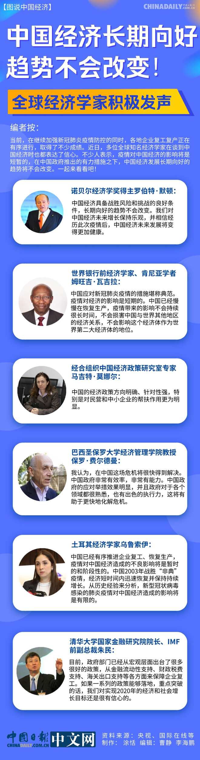 當(dāng)前,在繼續(xù)加強(qiáng)新冠肺炎疫情防控的同時(shí),各地企業(yè)復(fù)工復(fù)產(chǎn)正在有序進(jìn)行,取得了不少成績(jī)?。近日,多位全球知名經(jīng)濟(jì)學(xué)家在談到中國(guó)經(jīng)濟(jì)時(shí)也都表達(dá)了信心。不少人表示,疫情對(duì)中國(guó)經(jīng)濟(jì)的影響將是短暫的,在中國(guó)政府推出的有力措施之下,中國(guó)經(jīng)濟(jì)發(fā)展長(zhǎng)期向好的趨勢(shì)將不會(huì)改變。一起來看看吧!