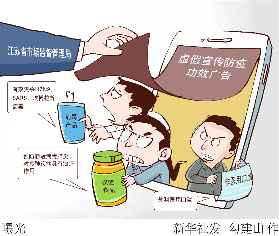 新華社南京2月27日電(記者鄭生竹)27日,江蘇省市場監(jiān)督管理局公布一批虛假宣傳防疫功效廣告案件。這些案件顯示,一些不法商家搭上預(yù)防新冠肺炎的順風(fēng)車,夸大產(chǎn)品功效,誤導(dǎo)消費(fèi)者購買使用。