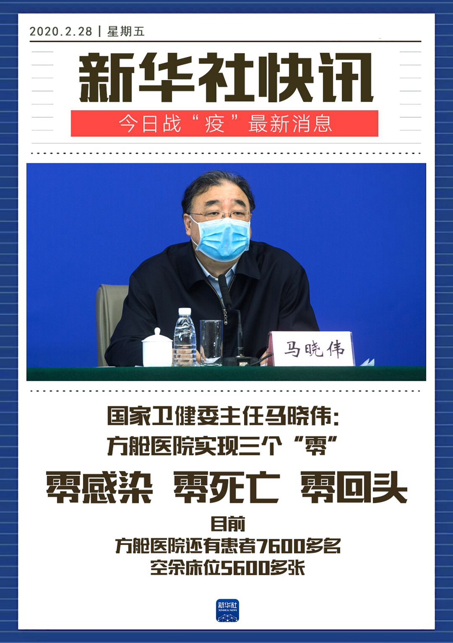 國家衛健委主任馬曉偉:方艙醫院實現三個“零”-新華網