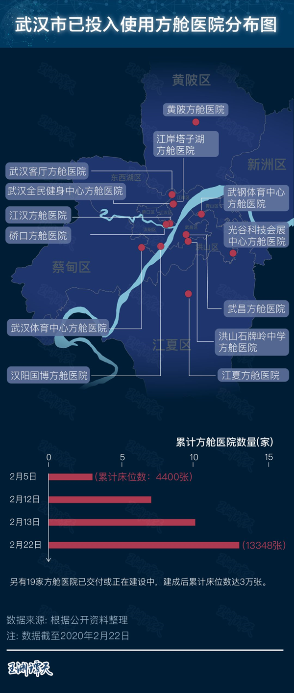 不到1個月,武漢新建了16家方艙醫院,開放床位13000多張?,F在,方艙空余床位有5600張。