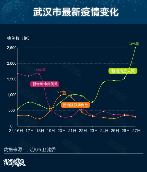 從20日開始,新增治愈人數已連續8天超過新增確診人數。從21日開始,新增治愈人數也超過了新增疑似人數。這說明,進出不僅達到了平衡,出院數還超過了新增確診病例數。