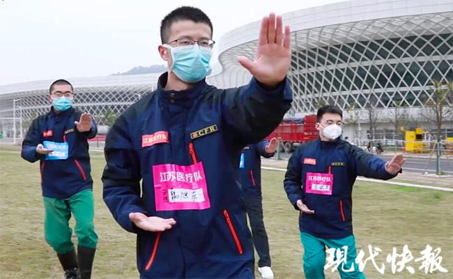 目前,這套 " 簡化六式太極操 " 教學視頻由國家中醫醫療隊江蘇隊和現代快報聯合制作完成,將向江蘇援湖北醫療隊 2804 名成員推廣。" 這條視頻,男護太極團是把六式太極操做了兩遍演示,醫護人員身體健康的情況下,打兩遍并不會感覺吃力。" 陸敏表示,希望這套太極操能廣為傳播,讓更多抗疫工作者、新冠肺炎患者都能學會,早日在 " 戰役 " 中獲勝。(特派記者 是鐘寅 / 文 張浩然 / 攝)