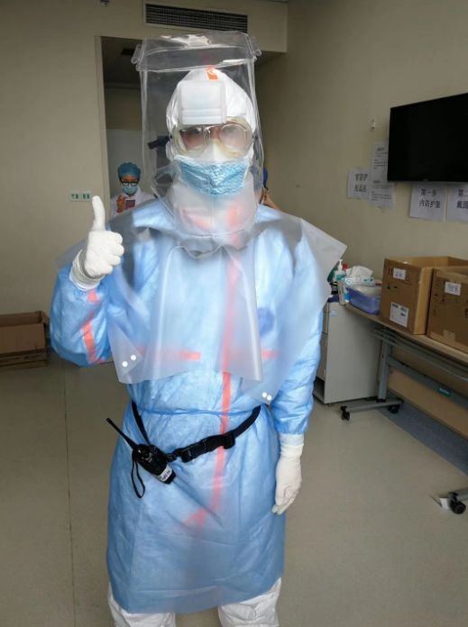 首先是防護裝備。進隔離病房一般是三級防護,除穿戴防護服、隔離衣、護目鏡、N95口罩、兩層手套,兩層腳套外,還要戴正壓防護頭套或一次性全面型防護頭套。此外,頭套還帶有新風過濾系統。整套防護裝備,凌肯在老師的幫助下,花了半個小時才穿上。穿戴完畢,凌肯整個人都很難受。護目鏡起霧,頭套風機發出巨大噪音,還有悶熱,整個人都變得遲鈍。