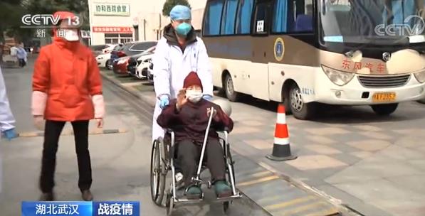 97歲高齡的新冠肺炎患者付桂英老人,幾天前在醫護人員的陪同下走出武漢協和醫院。