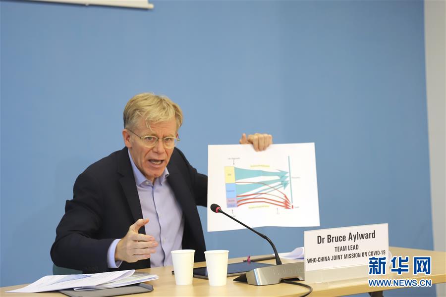 世界衛生組織赴中國考察專家組負責人布魯斯·艾爾沃德25日在世衛組織日內瓦總部舉行的記者會上,對中國采取的務實而靈活的大規模防控疫情措施表示贊賞。 新華社記者 陳俊俠 攝
