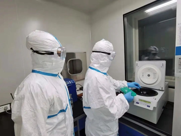 天津市河西區疾控中心核酸檢測實驗室工作人員在病毒檢測中進行核酸提取。新華社發