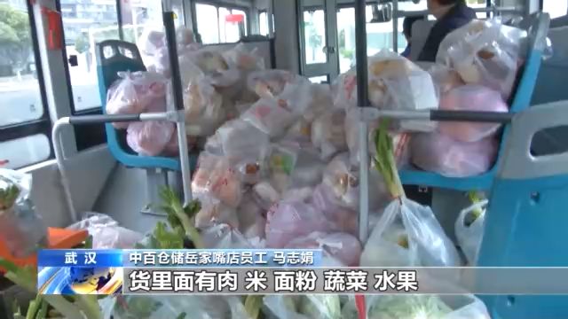 十點(diǎn)整,運(yùn)送1500包愛心菜和500多包其它生活物資的專車來了:一輛297路公交車。為了提高運(yùn)輸效率,武漢市公交集團(tuán)承接了全市社區(qū)團(tuán)購的集中配送任務(wù)。幾十名超市員工組成“人力傳送帶”把物資送上車。很快,公交車出發(fā)了。