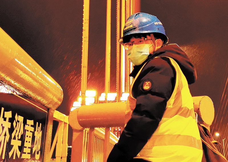 27歲的溫瑞是中鐵十五局電氣化公司武漢長江主軸橋梁彩化亮化美化項(xiàng)目員工。到3月15日,他已經(jīng)獨(dú)守在橋下的小板房55天了。3天一小查,7天一大查,溫瑞背起工具包上橋,一巡就是4小時(shí)到6小時(shí)。溫瑞說,他守護(hù)的不僅僅是燈光,更是一種希望,傳遞著武漢人的信心和堅(jiān)強(qiáng)。(湖北日報(bào)全媒記者 田悅 攝)