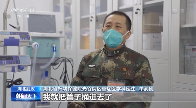 湖北省婦幼保健院光谷院區(qū)重癥醫(yī)學科醫(yī)生、危重癥患者救治突擊隊隊員 單潤剛:我們在吸氣的時候,聲門會變大,變大那一瞬間我就把管子插進去了,也就零點幾秒,不到一秒鐘。
