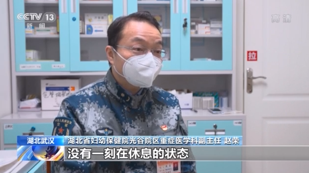 湖北省婦幼保健院光谷院區(qū)重癥醫(yī)學科副主任 趙榮:他隨時都有可能處在一種搶救狀態(tài),一個班4個醫(yī)生6個護士,甚至要6個護士進紅區(qū),大家從進來到出去沒有一刻在休息。