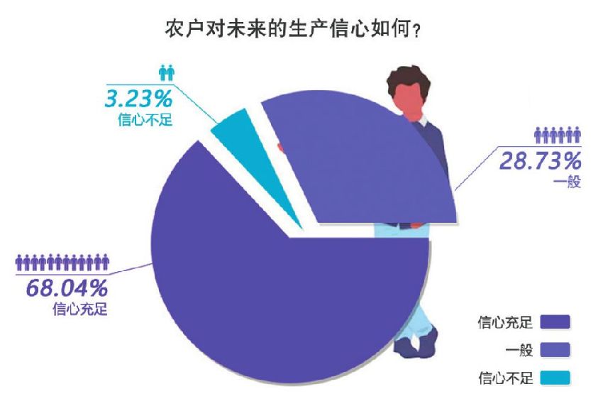 問(wèn)卷調(diào)查顯示,68.04%的農(nóng)戶(hù)表示對(duì)糧食生產(chǎn)未來(lái)“信心充足”,28.73%的農(nóng)戶(hù)表示“信心一般”,信心不足的僅占3.23%。(見(jiàn)圖2)