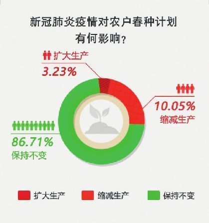 調(diào)查顯示,86.71%的農(nóng)戶(hù)表示春種計(jì)劃保持不變,只有18戶(hù)(占3.23%)農(nóng)戶(hù)表示將擴(kuò)大生產(chǎn),而56戶(hù)(占10.05%)農(nóng)戶(hù)表示將縮減生產(chǎn)。(見(jiàn)圖3)