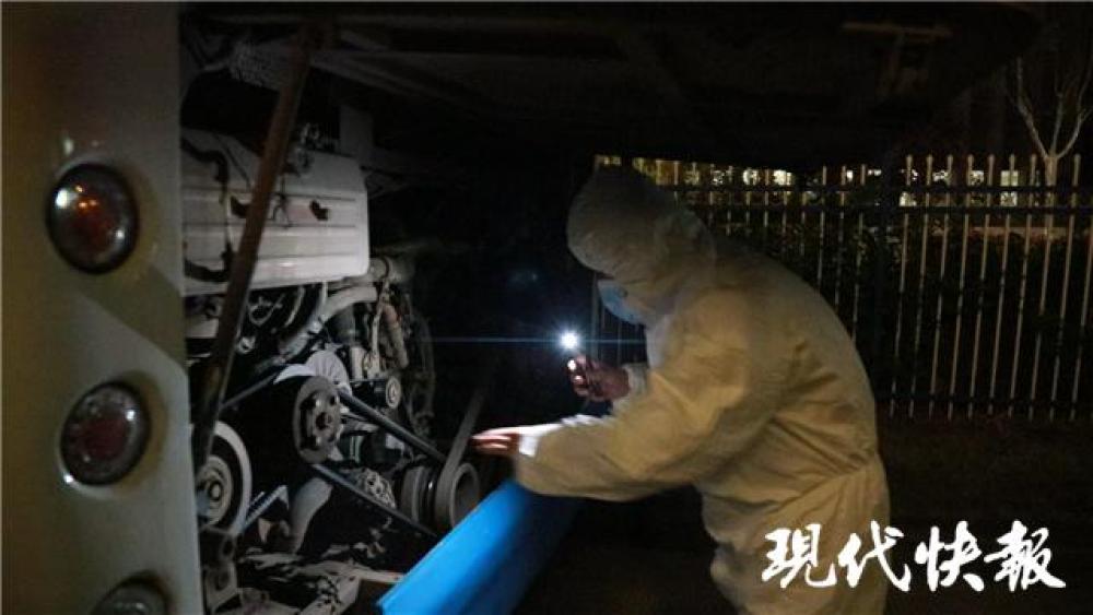 然而,陳強(qiáng)想起剛來的半個月,與現(xiàn)在的氛圍完全不同。“要說我不害怕,那肯定不現(xiàn)實(shí)?!标悘?qiáng)告訴現(xiàn)代快報記者,剛開始的半個月,他整個人都處于緊繃的狀態(tài),防護(hù)服裹得緊緊的,也不敢與車上的醫(yī)護(hù)人員有過多的交流?!坝幸淮挝医恿?0名醫(yī)護(hù)人員,座位全部坐滿了,當(dāng)時緊張極了?!彪S著疫情的好轉(zhuǎn),陳強(qiáng)也慢慢放下心來,他與醫(yī)護(hù)人員熟悉起來,之間也多了不少互動。