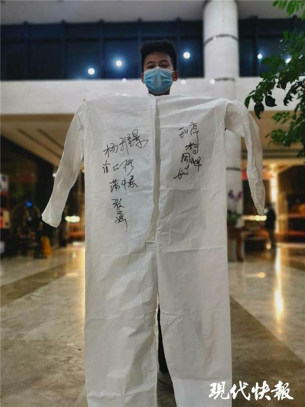“其實(shí)他們都比我大,叫我強(qiáng)哥都不敢應(yīng)。”陳強(qiáng)靦腆地笑著。陳強(qiáng)還展示了一件特殊的防護(hù)服,上面寫滿了他接送的醫(yī)護(hù)人員名字。“我希望即使他們走了,我也能記得他們?!?/p>