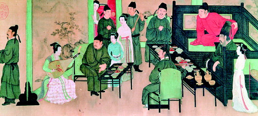 宋代,合餐進(jìn)一步定型,這與市民經(jīng)濟(jì)的發(fā)達(dá)不無關(guān)系。兩宋的都城,飲食行當(dāng)極其豐富,菜品繁密、品相細(xì)膩。各品類的酒樓、食肆也是不可勝數(shù),常常是食客滿盈。