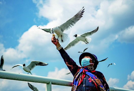 79歲的退休老人張恒禮,在新聞里看到今年有專人投喂紅嘴鷗,坦言心里踏實了許多。