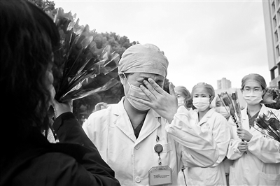 3月30日早上,北京醫(yī)療隊(duì)醫(yī)生張捷最后一次走進(jìn)了武漢的隔離病房,除去例行查房,他還要向患者們告別。一次次接受著“能回家了,替你們高興”的祝福,一遍遍囑咐著康復(fù)中的注意事項(xiàng)。原本半個(gè)小時(shí)的查房,一個(gè)半小時(shí)才結(jié)束,走出來(lái)時(shí),張捷的眼眶濕漉漉的。