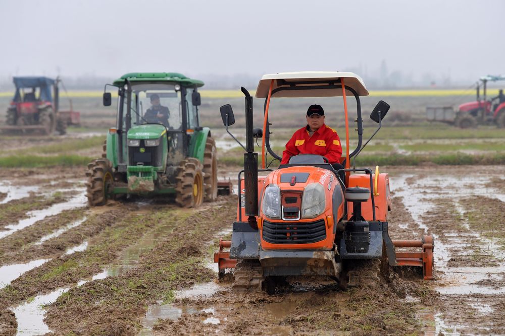 在江西省南昌縣蔣巷鎮,當地農民駕駛拖拉機在高標準農田里進行春耕翻地作業。新華社記者 彭昭之 攝