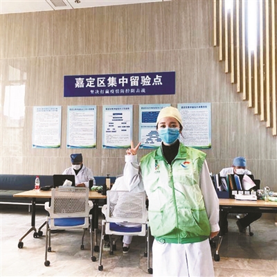還在隔離時,曹元元就希望隔離結束后能夠當一名志愿者回饋社會,她也詢問了嘉定區的工作人員。她告訴北青報記者,因為在機場檢疫時收獲感動,一開始她最想去機場當志愿者,后來得知工作強度太大,機場主要招募男性志愿者,于是她選擇到嘉定區一個隔離點當志愿者。4月15日,曹元元正式上崗。