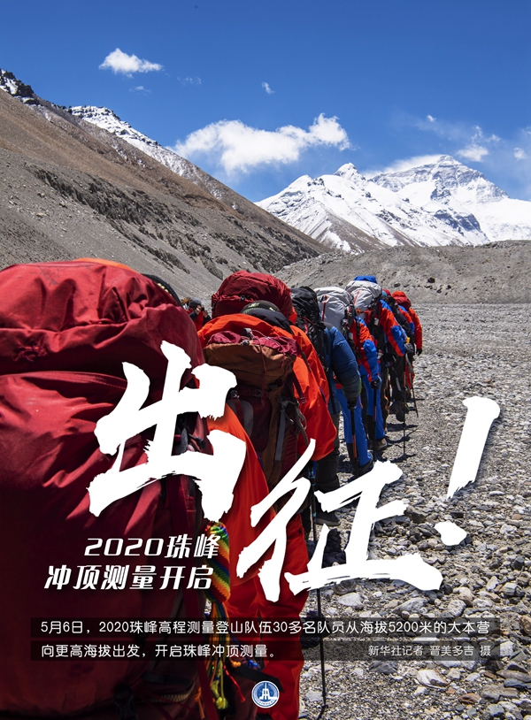 6日,2020珠峰高程測量行動測量登山隊舉行出發(fā)儀式,30多名計劃登頂?shù)臏y量登山隊員當(dāng)日從海拔5200米的珠峰登山大本營向更高海拔出發(fā),計劃抓住近日的天氣窗口,擇日登頂測量。如果成功,這將成為我國專業(yè)測繪人員首次登頂珠峰測高。