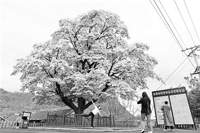 對于全區唯一一株流蘇古樹,園林綠化部門的養護遍及一年四季。鄭麗紅介紹,每年春季,專職人員會為流蘇古樹澆返青水、防治病蟲害;夏、秋兩季,為排水防澇,還會在古樹周圍挖排水槽;冬季防風雪,要及時修枝、清雪。