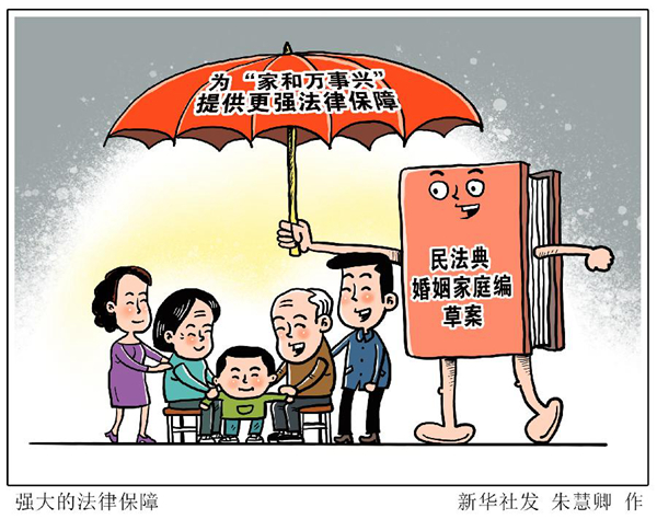 常言道:“家和萬事興”。個(gè)人婚姻家庭關(guān)系的和睦與否,與全社會(huì)的和諧穩(wěn)定息息相關(guān)。從注重“家風(fēng)”建設(shè),到加大權(quán)益保護(hù)力度,即將提請(qǐng)全國(guó)人代會(huì)審議的民法典草案,是我國(guó)婚姻家庭立法進(jìn)程中的重要里程碑。