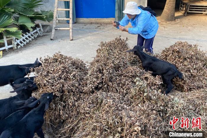 海南文昌龍樓紅海山羊養(yǎng)殖農民專業(yè)合作社內,社長符歡正悉心照料合作社養(yǎng)殖的130多只黑山羊。喂羊、清理羊舍、售賣農產品,是他每天的工作。