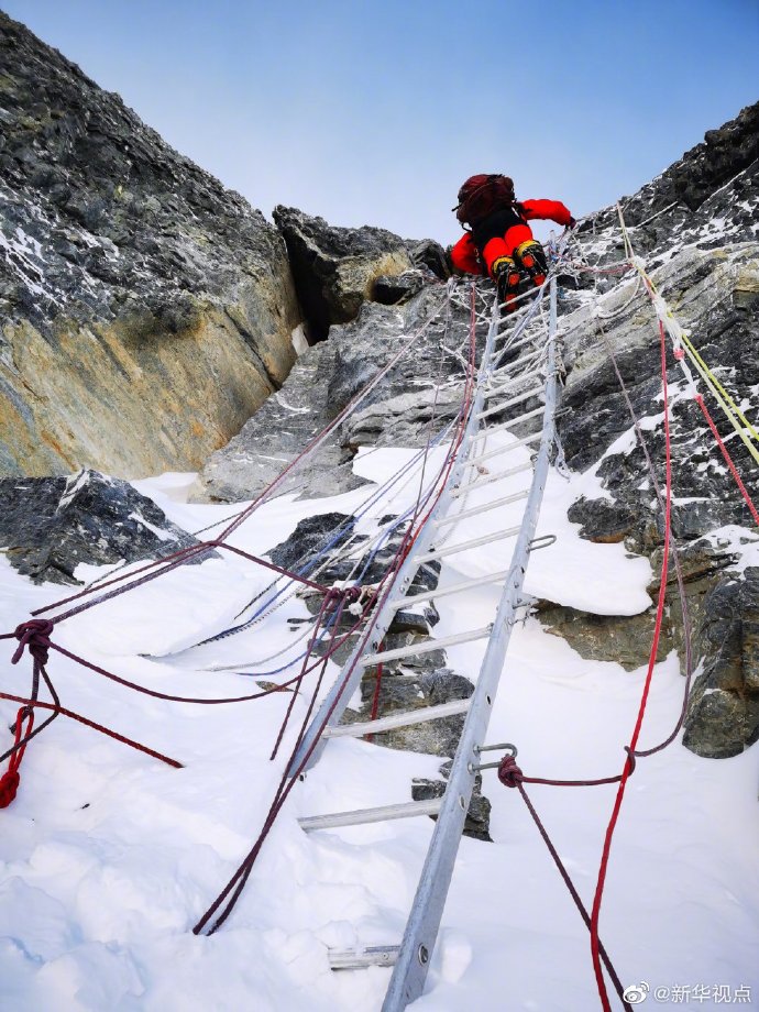 2020珠峰高程測(cè)量登山隊(duì)隊(duì)員已跨過第二臺(tái)階,準(zhǔn)備攀登第三臺(tái)階,進(jìn)行沖頂