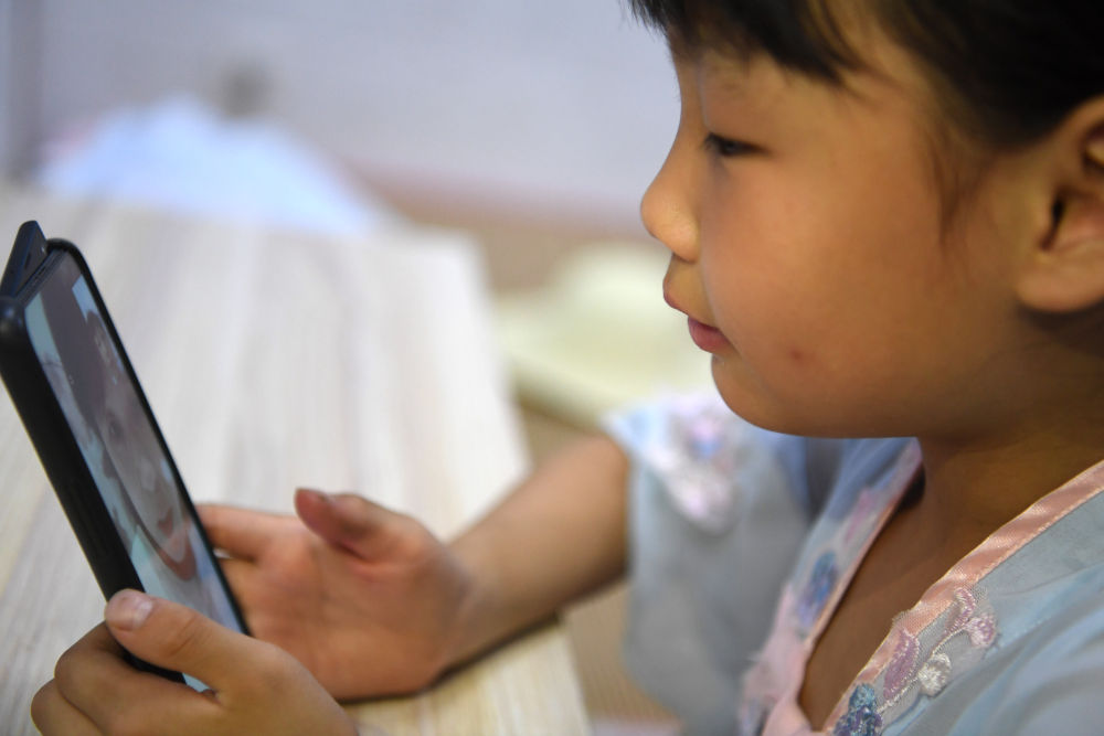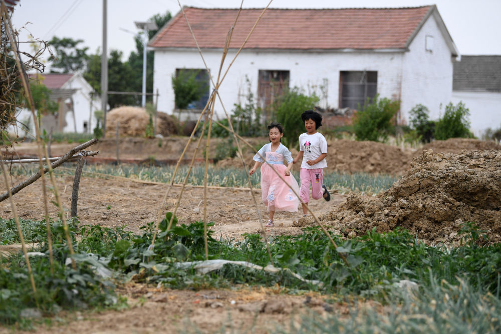 ↑?小思揚(前左三)在課間和同學一起玩耍。
