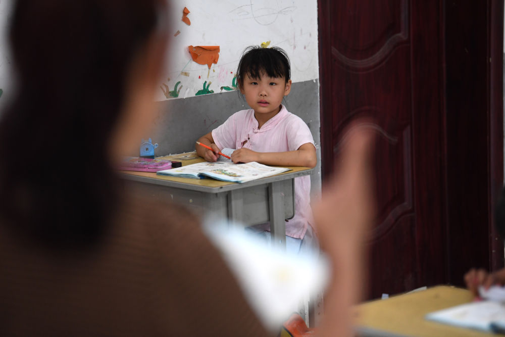 ↑?老師在課堂上輔導(dǎo)小思揚。